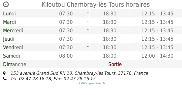 It is also possible to : Modifier ces HEURES D'OUVERTURE of Store Kiloutou Dans Chambray-lès Tours, 153 avenue Grand Sud RN 10,